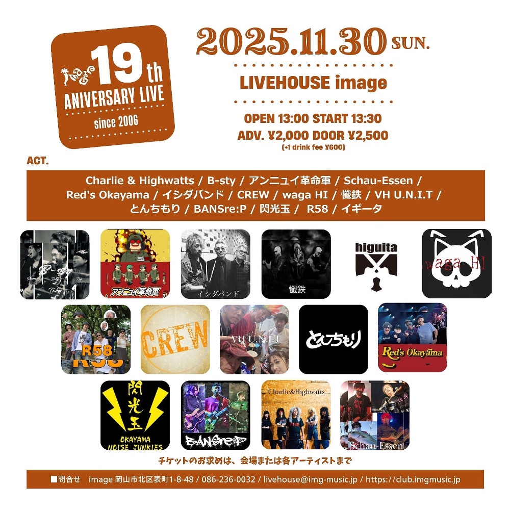 Charlie & Highwatts / B-sty / アンニュイ革命軍 / Schau-Essen / Red's Okayama /